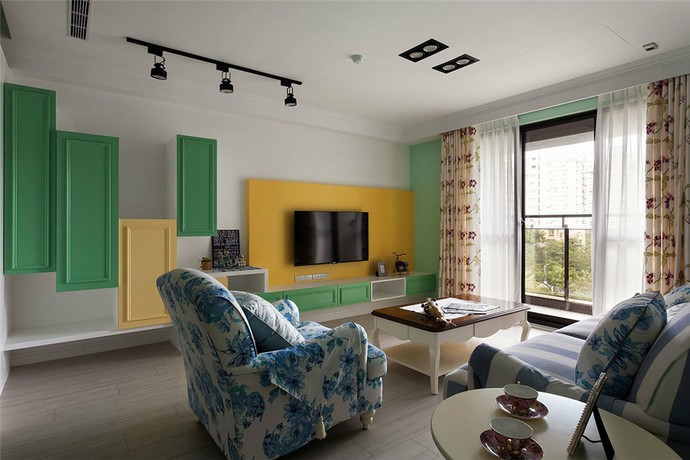 客廳的顏色大膽有清新,輔以淡藍(lán)色的沙發(fā),整個(gè)空間看上去既有設(shè)計(jì)感,視覺(jué)上也很舒適。