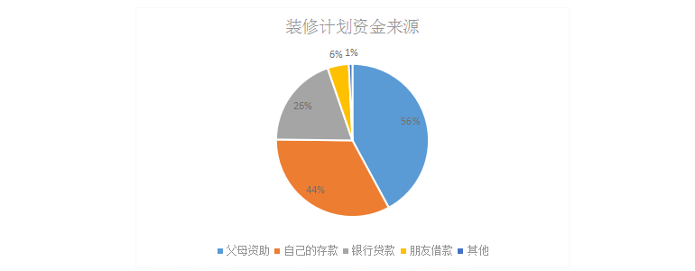 根據(jù)調(diào)查結(jié)果顯示,56%的長(zhǎng)沙人在面臨裝修的時(shí)候需要靠父母資助,44%的長(zhǎng)沙人可以靠自己的存款完成裝修,26%的長(zhǎng)沙人愿意選擇銀行貸款來(lái)緩解裝修帶來(lái)的資金壓力。