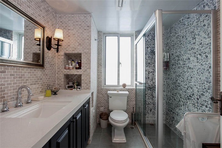 墻面是占據(jù)整個空間大部分面積,而整體色彩會給人先入為主的既視感,因此,提升的關鍵要從墻面開始,在顏色上,宜選用清冷淡雅色調,除給人以干凈清爽之感外,也會增加空間感,如不規(guī)則條紋大理石,讓整個衛(wèi)生間充滿隨性,輕松