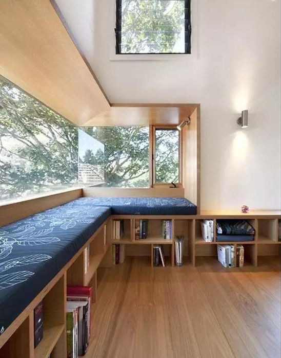 同時,飄窗的下面可以兼具了收納的功能,放一些書、毯子等物品,隨用隨取。