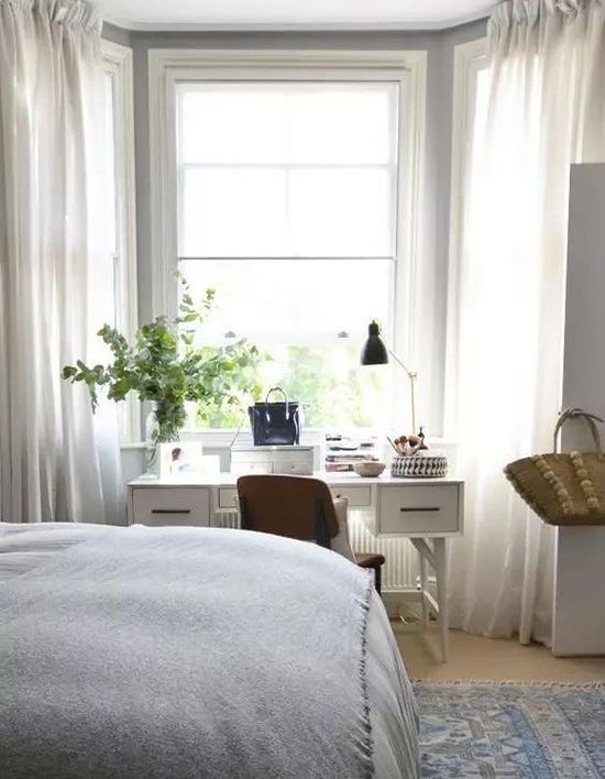 飄窗可以變身工作角,工作累了的時候抬頭看看窗外,讓眼睛放松一下。