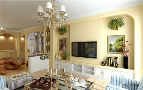 電視背景墻作為客廳的一部分,在色調(diào)的把握上要盡量與室內(nèi)空間協(xié)調(diào)。假如電視背景墻與客廳色彩不和諧,不僅影響視覺觀感,還有可能對情緒也造成影響。一般來說,淺藍色、淺淺的金色、淺綠色等都是不錯的色調(diào)。