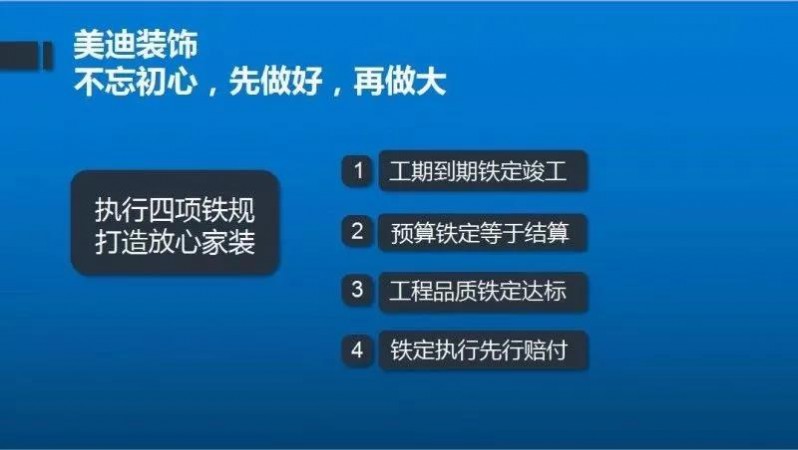 拒絕家裝陷阱,把擔(dān)心變成放心!美迪裝飾率先推出先行賠付政策,嚴(yán)格執(zhí)行四項(xiàng)鐵規(guī):