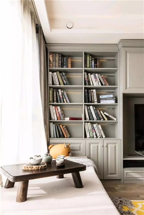 窗邊的飄窗擺一套小茶桌,在這里既可以品茶賞人生,又能在午后愜意地閱讀放松;