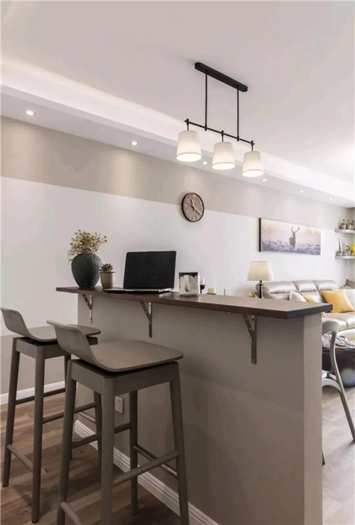 靠著餐桌的背后,還有一張吧臺,可以充當(dāng)書桌功能;