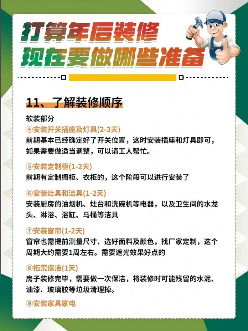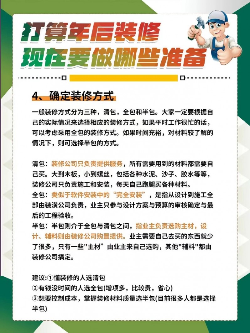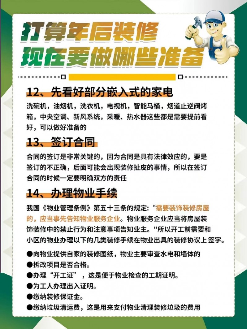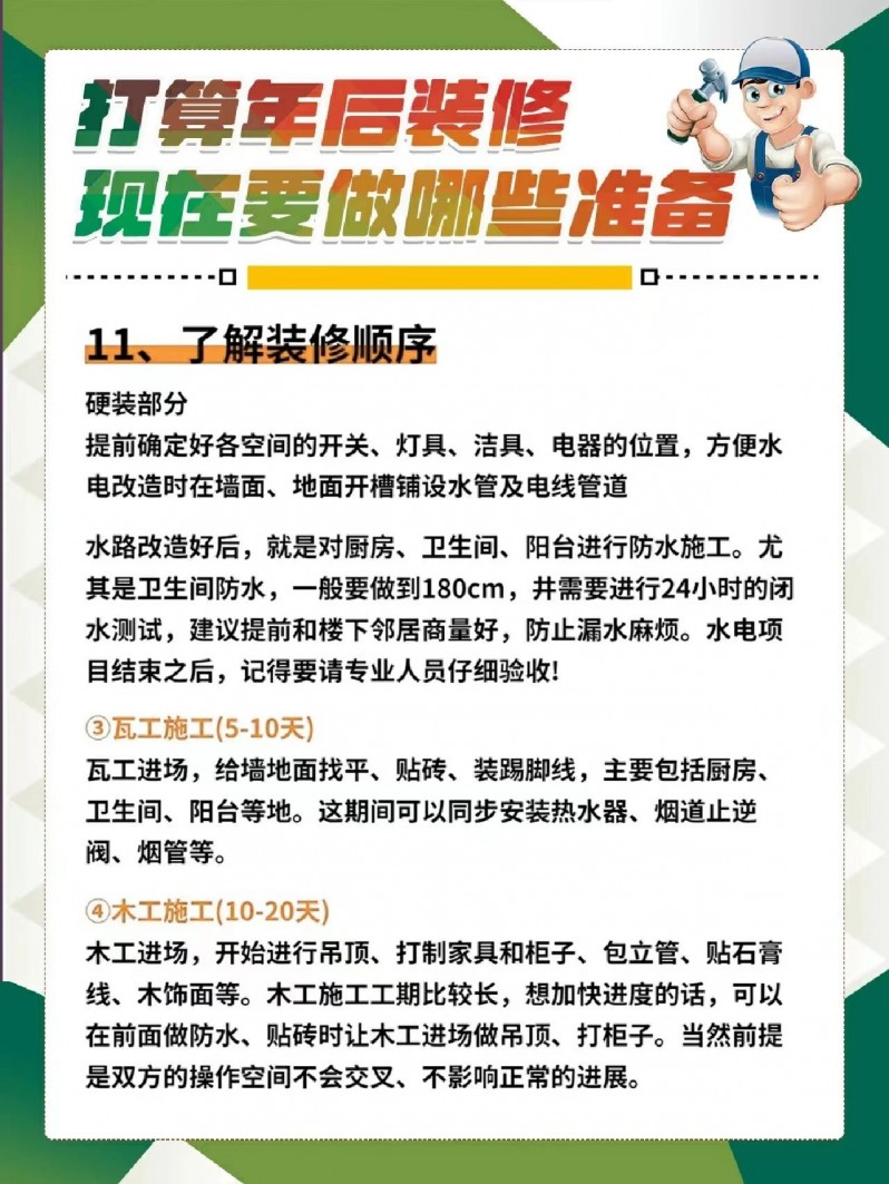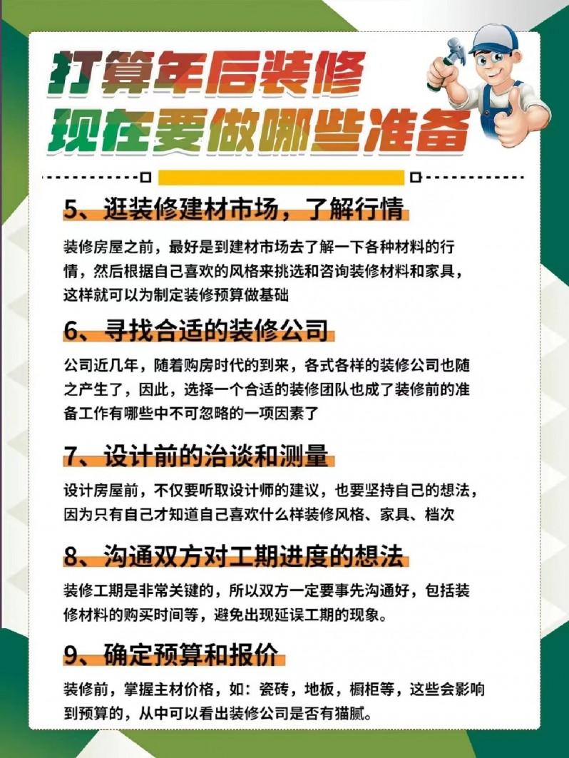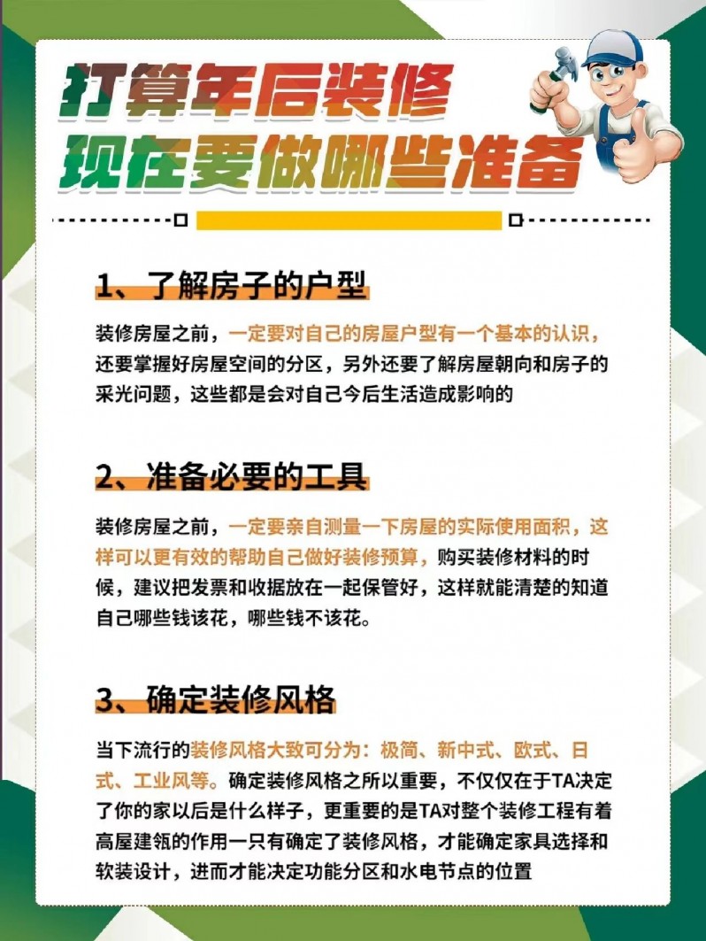 總之,如果大家準備年后就開工裝修的話,一定要做好提前準備,盡可能的避免裝修時因準備不足而犯錯!