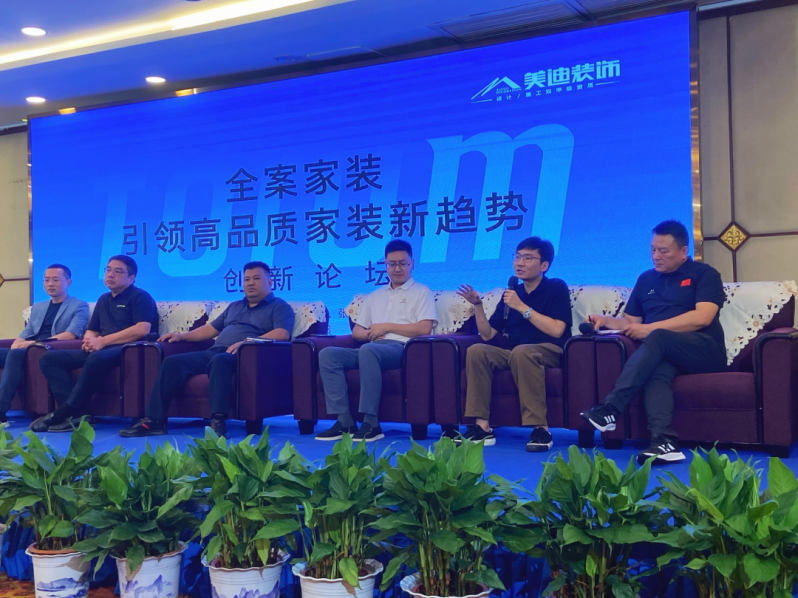 隨后,創(chuàng)新論壇環(huán)節(jié)開啟。美迪裝飾董事長鐘菊成、美迪裝飾副總裁鐘成、美迪裝飾總督導(dǎo)張曉帆、中聯(lián)重科副總裁兼中聯(lián)重科新材料董事長陳培亮、美度凡爾賽定制家居董事長程紅雨,博世電器湖南經(jīng)銷商總經(jīng)理蔡躍龍,以及意博門窗戰(zhàn)略規(guī)劃總監(jiān)賀濤等業(yè)內(nèi)精英齊聚一堂,共同參與論壇主題討論。論壇由美迪裝飾品牌營銷中心總經(jīng)理賀超主持。本次論壇以“全案家裝,何以引領(lǐng)家裝行業(yè)高質(zhì)量發(fā)展”為主題,分別就全案裝修模式下,家居類企業(yè)如何提供高品質(zhì)設(shè)計、服務(wù)和產(chǎn)品做了深入探討和交流,各嘉賓紛紛發(fā)表真知灼見,共同為家裝行業(yè)的未來發(fā)展獻計獻策。