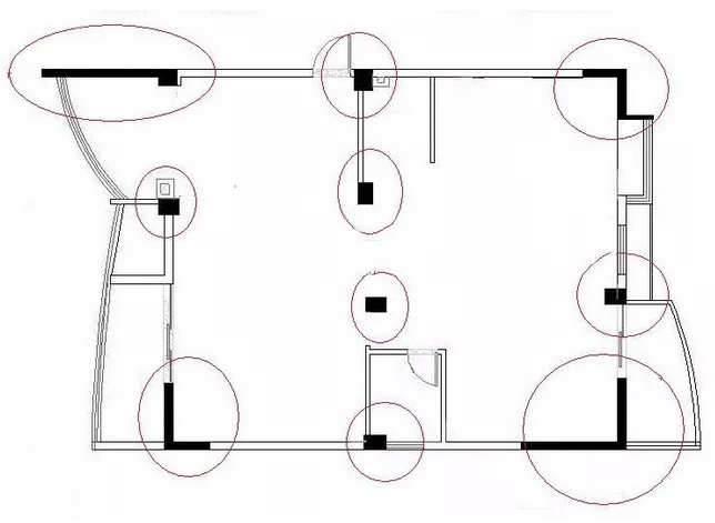 如果你有自己房屋的戶型圖,可以打開看看,如圖所示,在工程圖上標(biāo)注為黑色的墻體就是承重墻,而標(biāo)注為白色部分的墻體為非承重墻,這類墻體可以進行適量拆改。