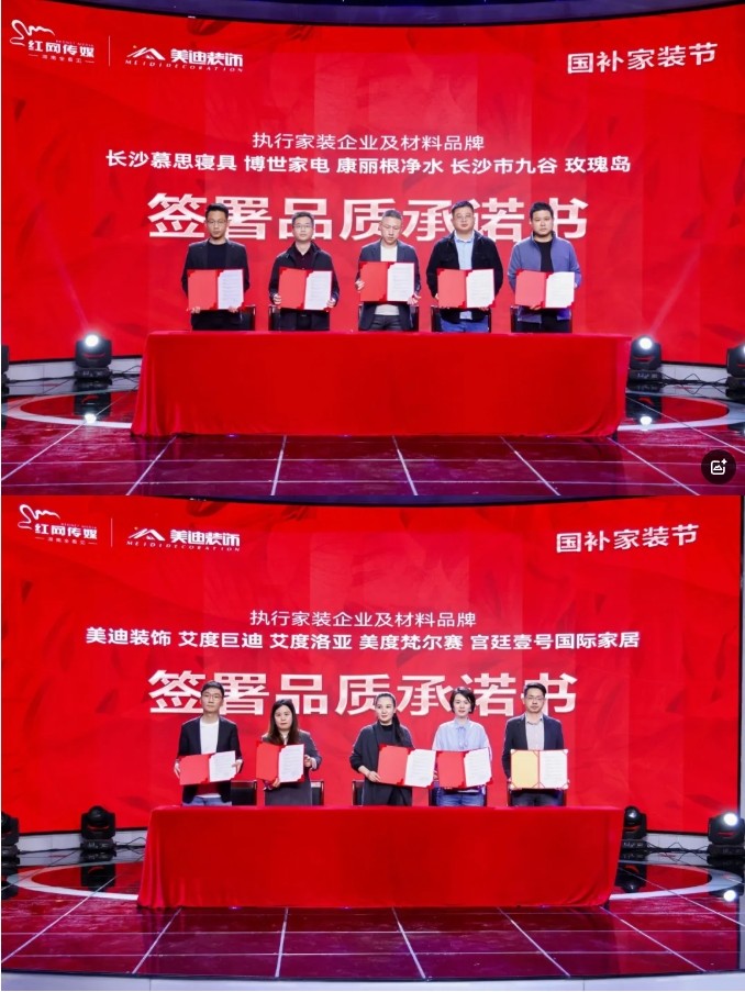 活動(dòng)現(xiàn)場(chǎng),美迪裝飾聯(lián)合艾度巨迪、慕思寢具、大金空調(diào)、博世家電等一線品牌簽署《國(guó)補(bǔ)品質(zhì)承諾書》,承諾明碼標(biāo)價(jià)、杜絕隱性消費(fèi)、全程接受紅網(wǎng)監(jiān)督,為消費(fèi)者權(quán)益保駕護(hù)航。