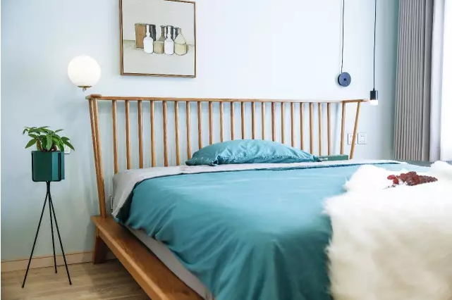 主臥風(fēng)格清新質(zhì)樸,營(yíng)造一種零壓力的自然感覺(jué),很容易讓身處其中的人心情平靜下來(lái)。