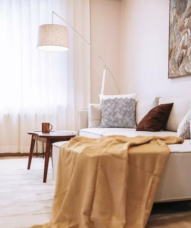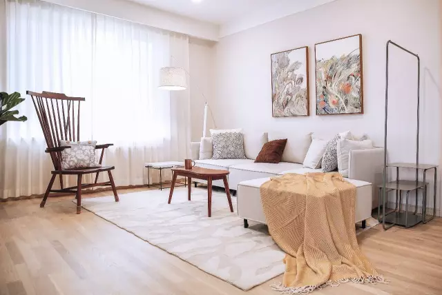幾何圖案的抱枕,隨意擺放的毛毯以及富有藝術(shù)感的裝飾畫(huà),共同打破了純白沙發(fā)帶來(lái)的單調(diào),既活躍了空間色彩,又呈現(xiàn)出了北歐風(fēng)特有的隨意自然。