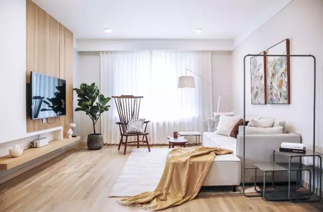 客廳通過(guò)白色與木色來(lái)提亮空間,搭配簡(jiǎn)約而別致的功能性家具,整體看上去淡雅、柔和,帶來(lái)一種寧?kù)o的感覺(jué)。
