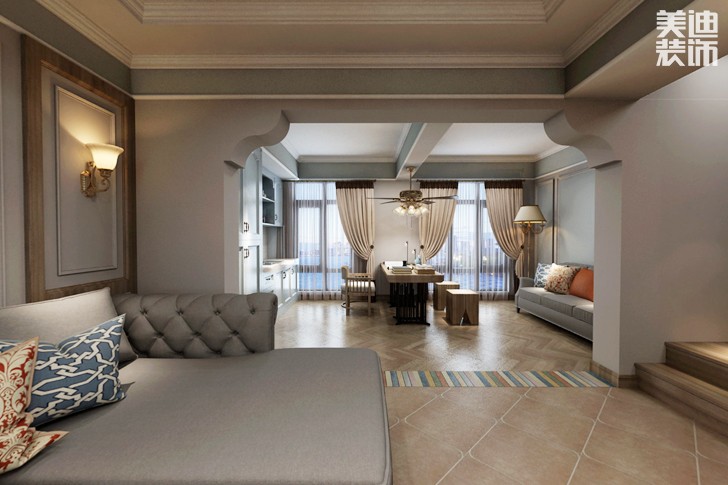 設(shè)計(jì)理念: 本案以傳統(tǒng)的中式文化為底蘊(yùn),將清雅含蓄且代表中國傳統(tǒng)家具中的經(jīng)典元素與新中式抽象美感相結(jié)合,以一種東方人的美學(xué)觀念控制節(jié)奏,循序漸近,使整個案例格調(diào)優(yōu)雅,平和內(nèi)斂,將東方文化的美感融入現(xiàn)代生活,盡顯大家風(fēng)范。