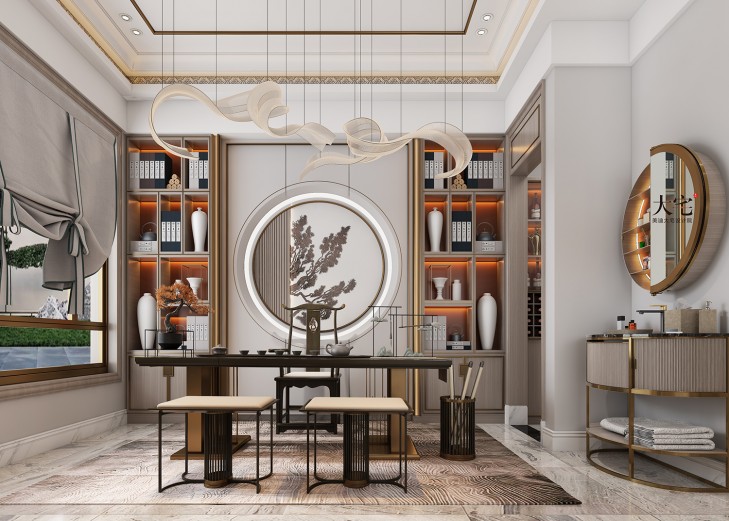 北大資源理想家園260平方米簡美風(fēng)格案例效果圖-茶室