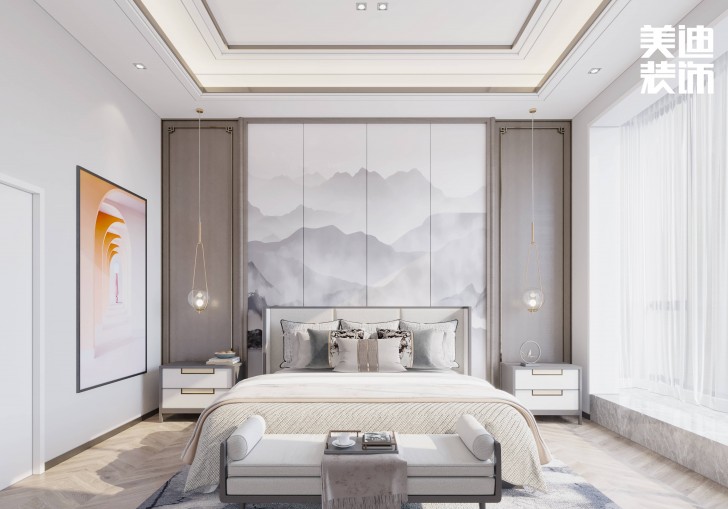 富灣國際320㎡現(xiàn)代輕奢風(fēng)裝修案例效果圖-臥室