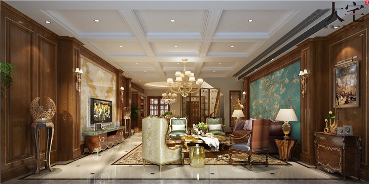 金地三千府402平歐式風(fēng)裝修案例圖—客廳