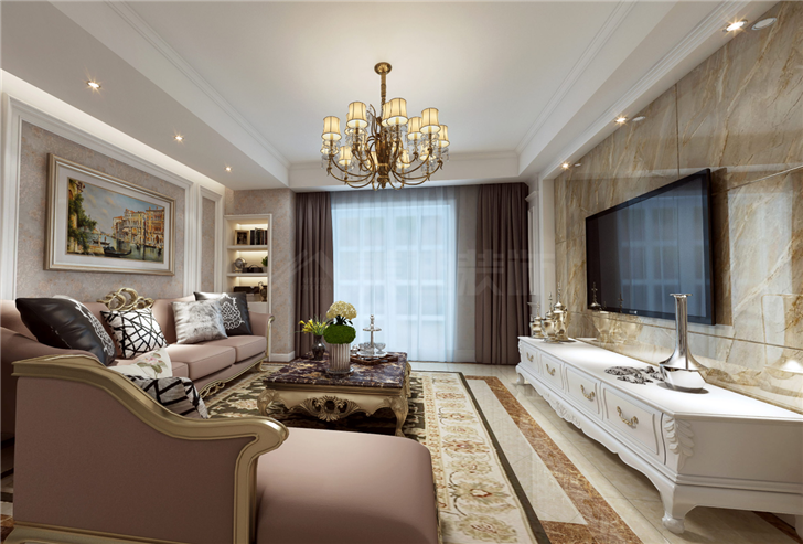 翡翠華庭102平歐式風(fēng)裝修案例圖—客廳