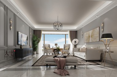 美萊美城市廣場140平現(xiàn)代效果圖--客廳