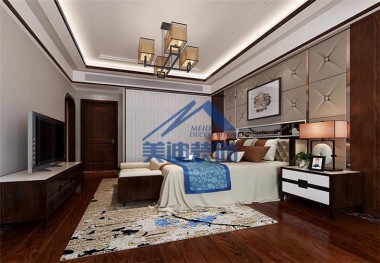 堤亞納灣133平美式風(fēng)裝修案例圖—臥室