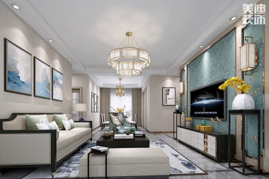 翡翠華庭102平歐式風(fēng)裝修案例圖—客廳