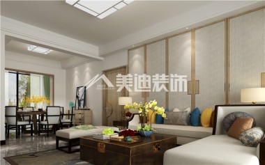華潤橡樹灣新中式案例裝修圖—客餐廳