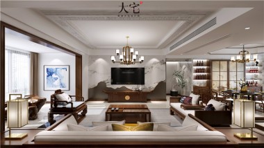 江山一號(hào)220平新中式風(fēng)裝修案例圖—客 ...