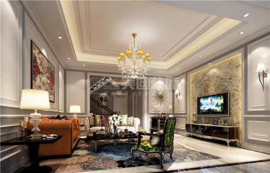 定江洋285平歐式風(fēng)裝修案例圖—客廳