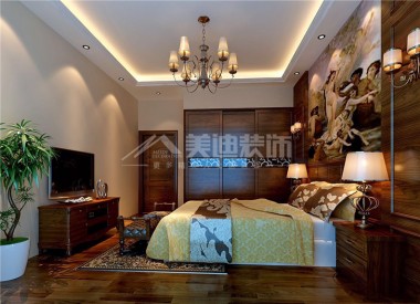 定江洋220平港式風(fēng)裝修案例圖—主臥