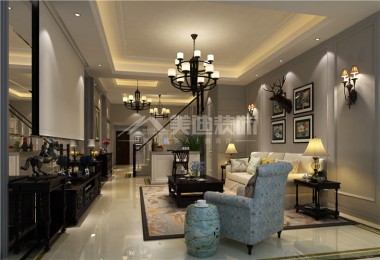 怡海星城200平美式風(fēng)裝修案例圖—客廳