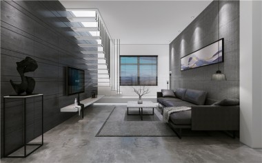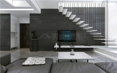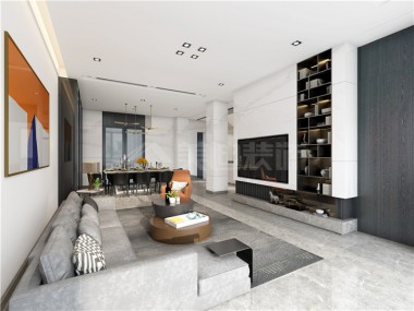 天麓商層165平后現(xiàn)代裝修案例圖—客廳