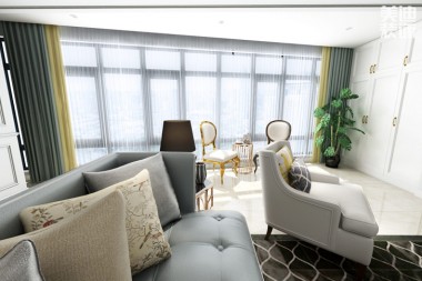 明發(fā)國(guó)際85㎡輕奢風(fēng)格案例效果圖—客廳