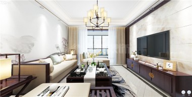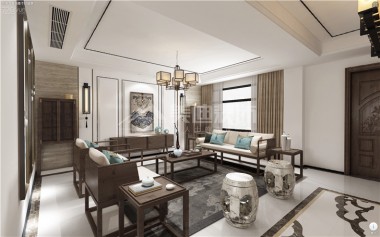 早安星城新中式風(fēng)裝修案例圖—客廳