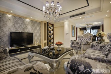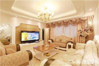 藏瓏320平簡(jiǎn)歐風(fēng)裝修案例圖—客廳