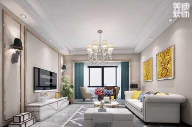 翡翠華庭102平歐式風裝修案例圖—客廳