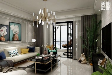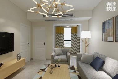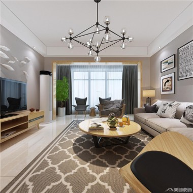 湘熙水郡清新北歐風(fēng)裝修案例圖—客廳