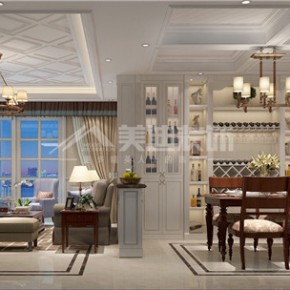 保利西海岸128平米美式風(fēng)格裝修案例效果圖