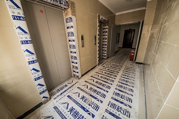 細    節(jié):美迪裝飾地膜鋪滿整個電梯出口及過道