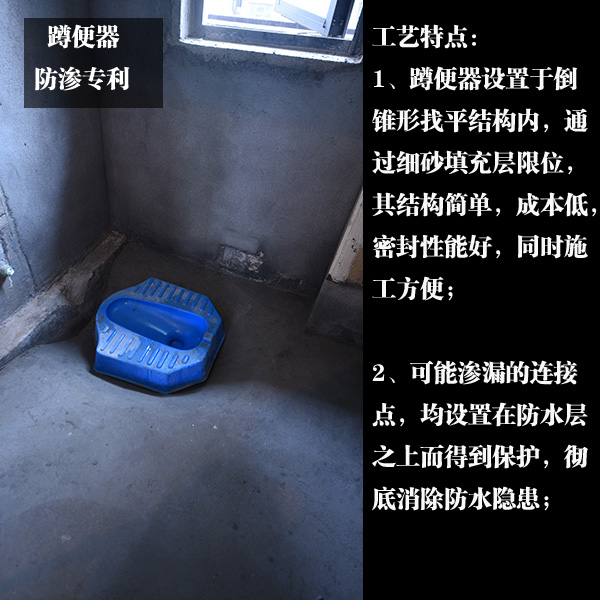 衛(wèi)生間蹲便處預(yù)留凹坑,污水可直接通過凹坑排入下水道,防止積水受潮。地面防水工程處理完后,必須現(xiàn)場(chǎng)注水進(jìn)行耐水、隔水測(cè)試。衛(wèi)生間下水道經(jīng)特殊處理防止水管老化開裂。