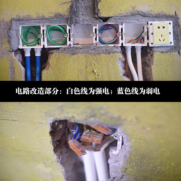 電路布線時(shí),強(qiáng)電、弱電分開,強(qiáng)電部分為白色電線、弱電為藍(lán)色電線,同時(shí)在每個(gè)電線接口處都包裹有一層錫箔紙防止電流干擾。